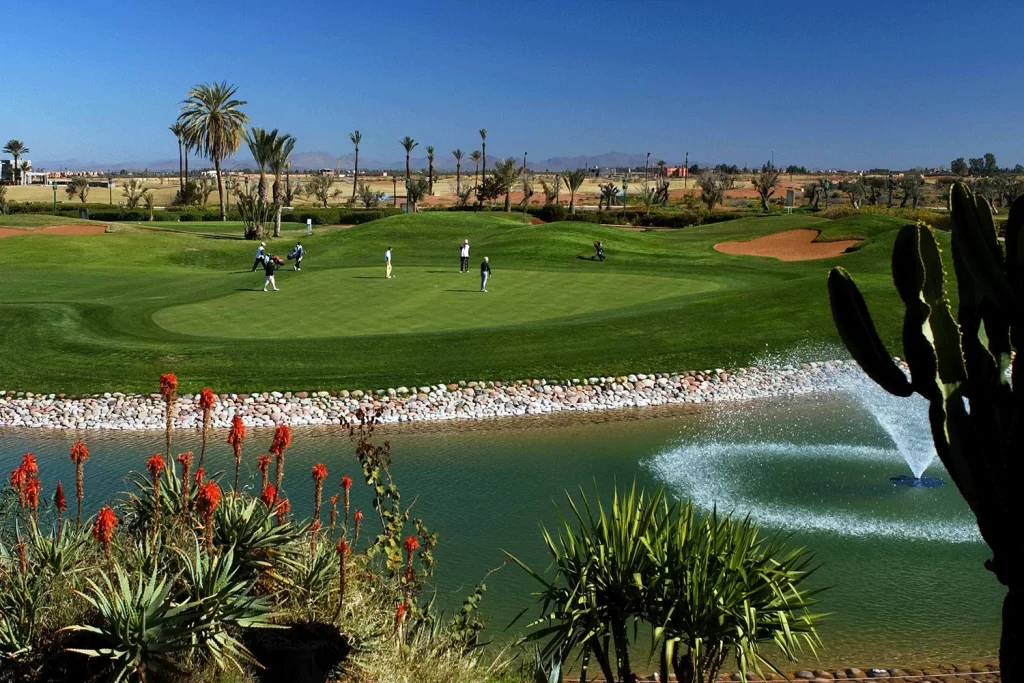 The 27-hole golf course is located at 2 steps from The Royal Golf Marrakech and Al Maaden Golf, in one of the most prestigious quarters in Marrakech, hosting luxury residences and villas, frequently hired by golf players, who wish to spend their vacation close to their favorite golf course.